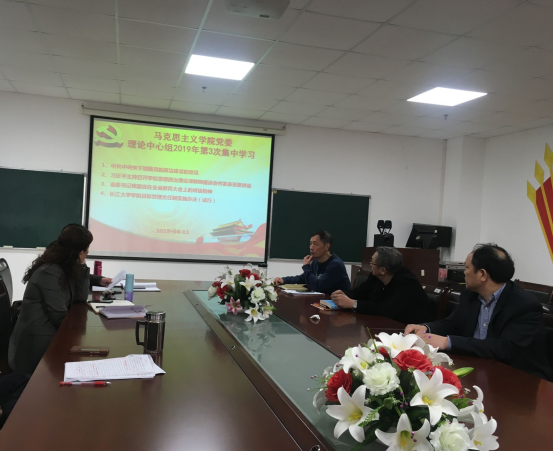 2019年4月11日,马克思主义学院党委理论学习中心组在文科楼1104室组织了第三次集中学习。学院党委委员参加了本次会议,会议由分党委书记吴智勇主持。