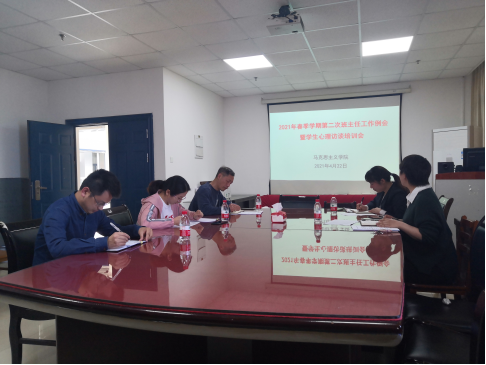 2021年4月22日,马克思主义学院在文科楼1101室召开了本学期第二次班主任例会暨学生心理访谈培训会,会议由院党委副书记马小佼主持。