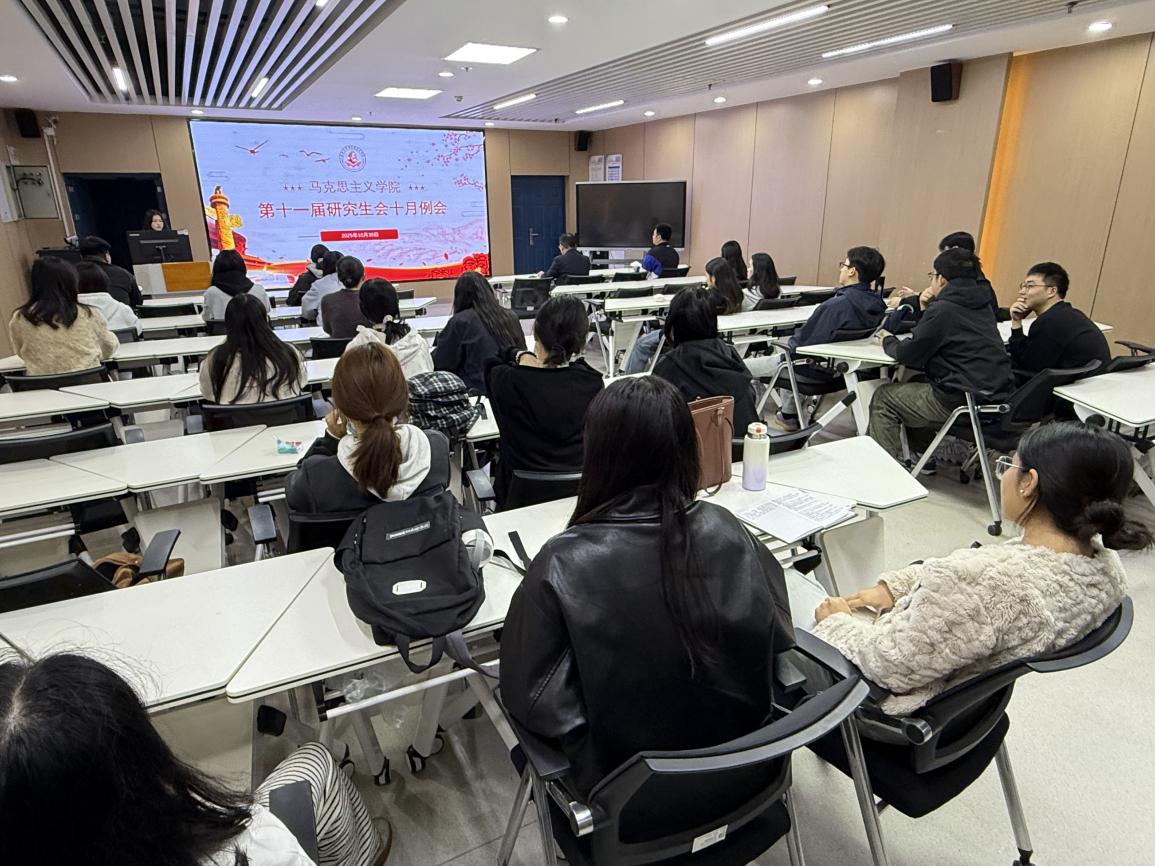 (通讯员刘诗雨 汤羽彤)为总结十月工作成果、明确十一月工作方向,进一步凝聚研究生会团队力量,马克思主义学院于10月30日在文科大楼1008室召开了研究生会10月总结例会。学院党委副书记竺正海、辅导员邓鹏以及第十一届研究生会全体成员参加会议。本次会议由学科思政QZ251班学生黄琳雯主持。