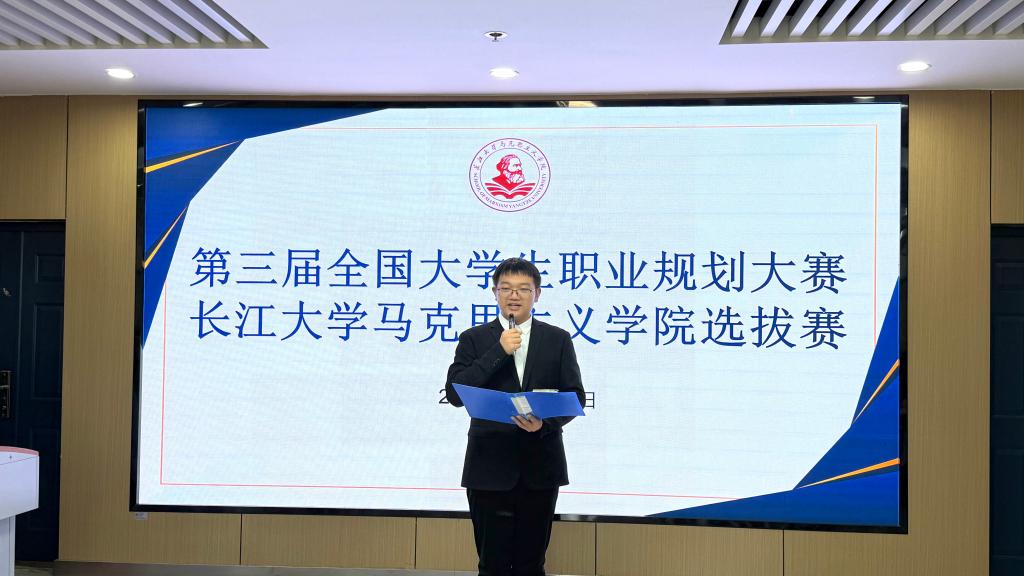 (通讯员 彭振午/文 夏宇靓 阳玉莹/摄)以规划为舟,乘风破浪赴前程。为帮助青年学子规划职业方向,11月13日下午,马克思主义学院在文科楼1008室举行第三届全国大学生职业规划选拔赛暨2025年长江大学马克思主义学院职业规划大赛决赛。经过复赛选拔,共有8名选手晋级本次决赛。学工办主任张云雾,年级辅导员邓鹏,专任教师陈思杭,高年级代表崔孔辉、田钰鑫、袁田担任评委,全体大一学生到场观摩。